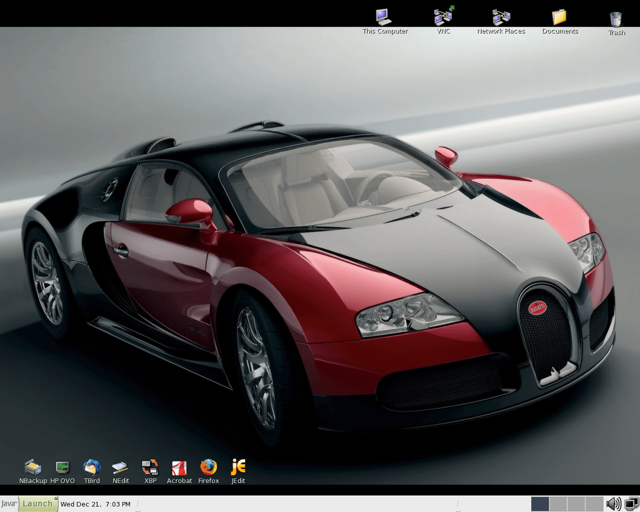 A general view of the desktop with a few shortcuts to applications I frequently use and a nice backdrop with car, which on my salary I can only hope to steal.