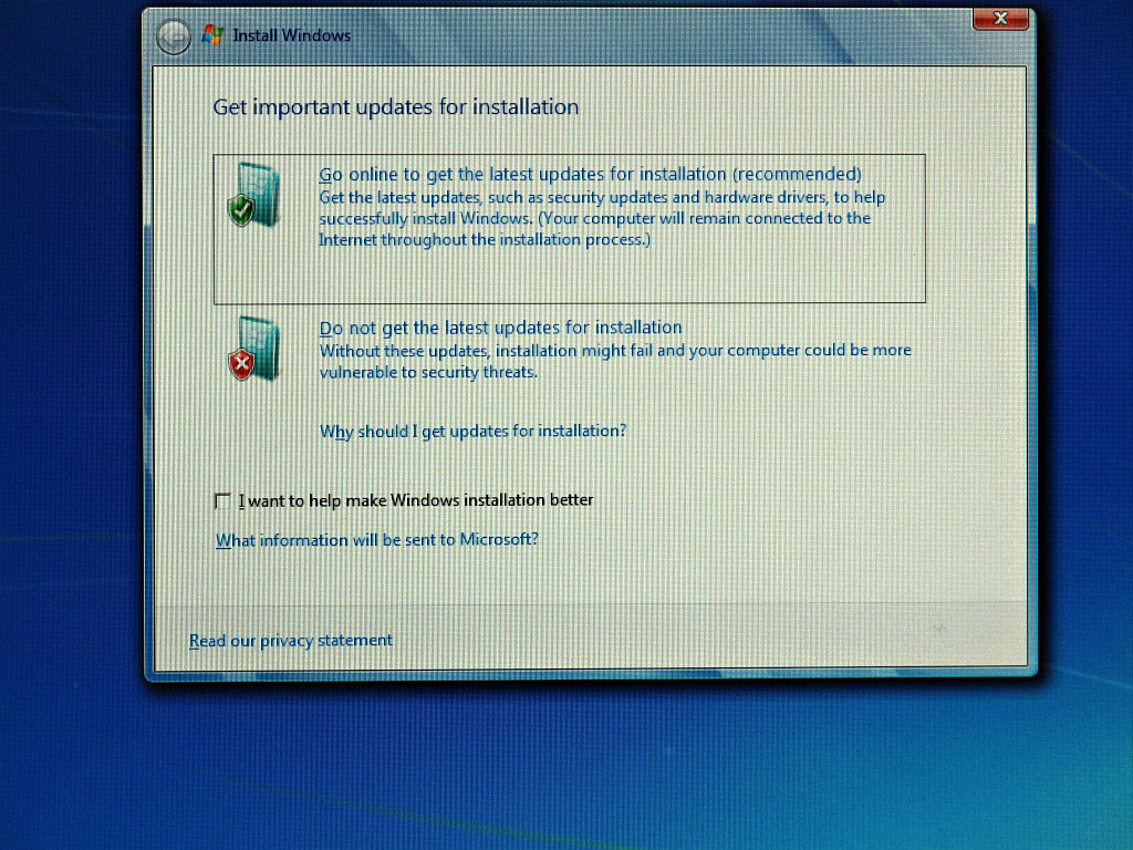 So I cleaned up the hard drive, removed a couple of non-compatible applications (VMWare Player and Abbyy FineReader) and launched the correct 64-bit upgrade installer. It went through the usual steps – unpacking the archives, running compatibility analysis, etc. – and about half-an-hour later informed me that the upgrade process is ready to commence. The installer wanted to go online to get the latest updates for the installation. It told me that “your computer will remain connected to the Internet throughout the installation process.” Naturally, I selected the option to do an offline upgrade, since Microsoft is yet to invent an operating system that can remain connected to the Internet while the computer is rebooting (and Windows 7 upgrade requires a multitude of reboots).